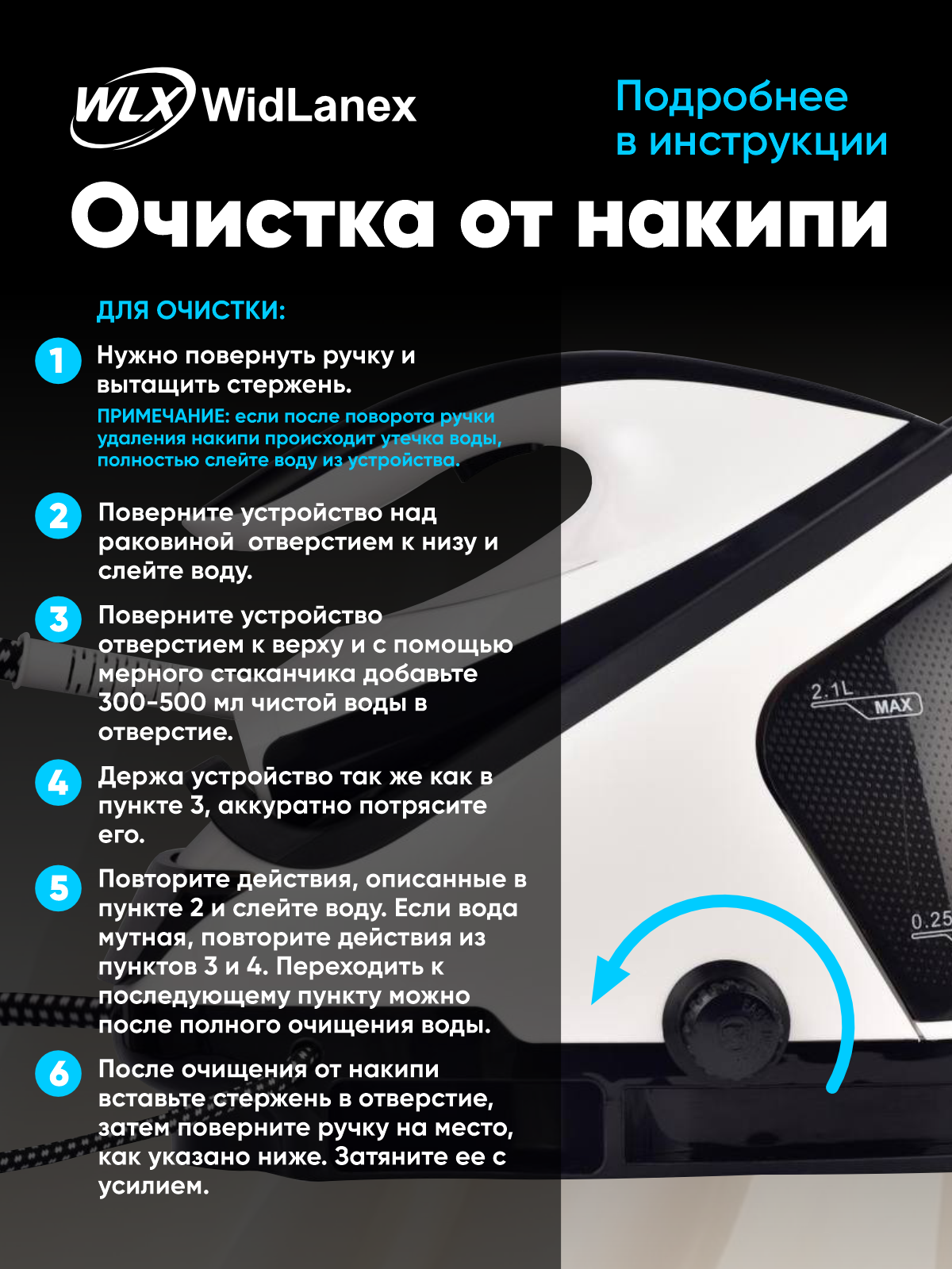 Парогенератор WidLanex создан для тех, кто хочет получать профессиональный результат дома — быстро, удобно и без лишних усилий. Модель подаёт стабильный, мощный пар, который моментально расправляет ткани, убирает запахи и помогает очищать поверхности без химии.